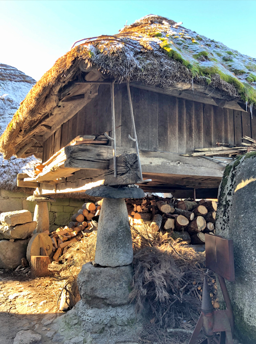 Los Ancares mantienen unas costumbres, arquitectura y hablas propias, lo más característico son las pallozas y los hórreos.