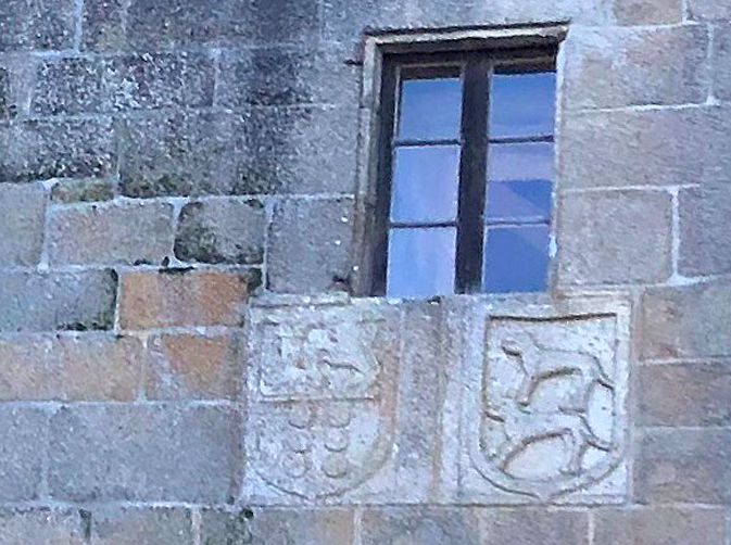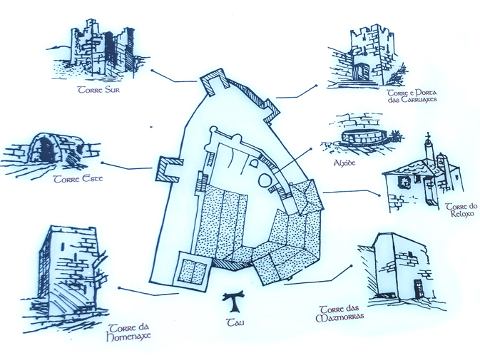 Grabado encima de la puerta, la letra griega TAU. El Conde de Lemos tenía por costumbre utilizar el símbolo de la TAU en todos sus castillos gallegos. Por lo tanto la TAU en la entrada al Castillo tiene una doble finalidad o simbología: proteger a cuantos acceden al Castillo, y principalmente reclamar el Castillo como propiedad.